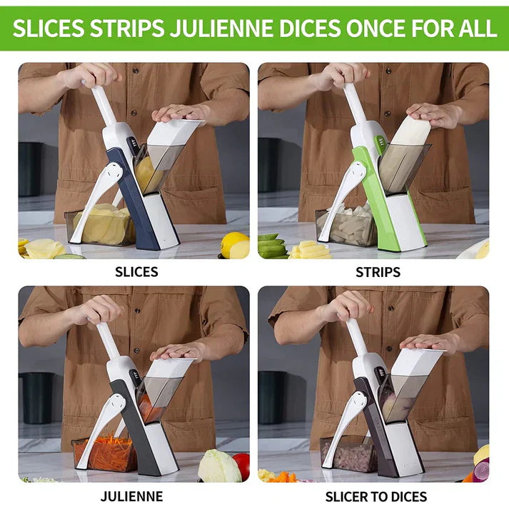 4-in-1 Cutting Functions – Easily switch between slicing, strip-cutting, julienne, and dicing modes, making food prep faster and more efficient.